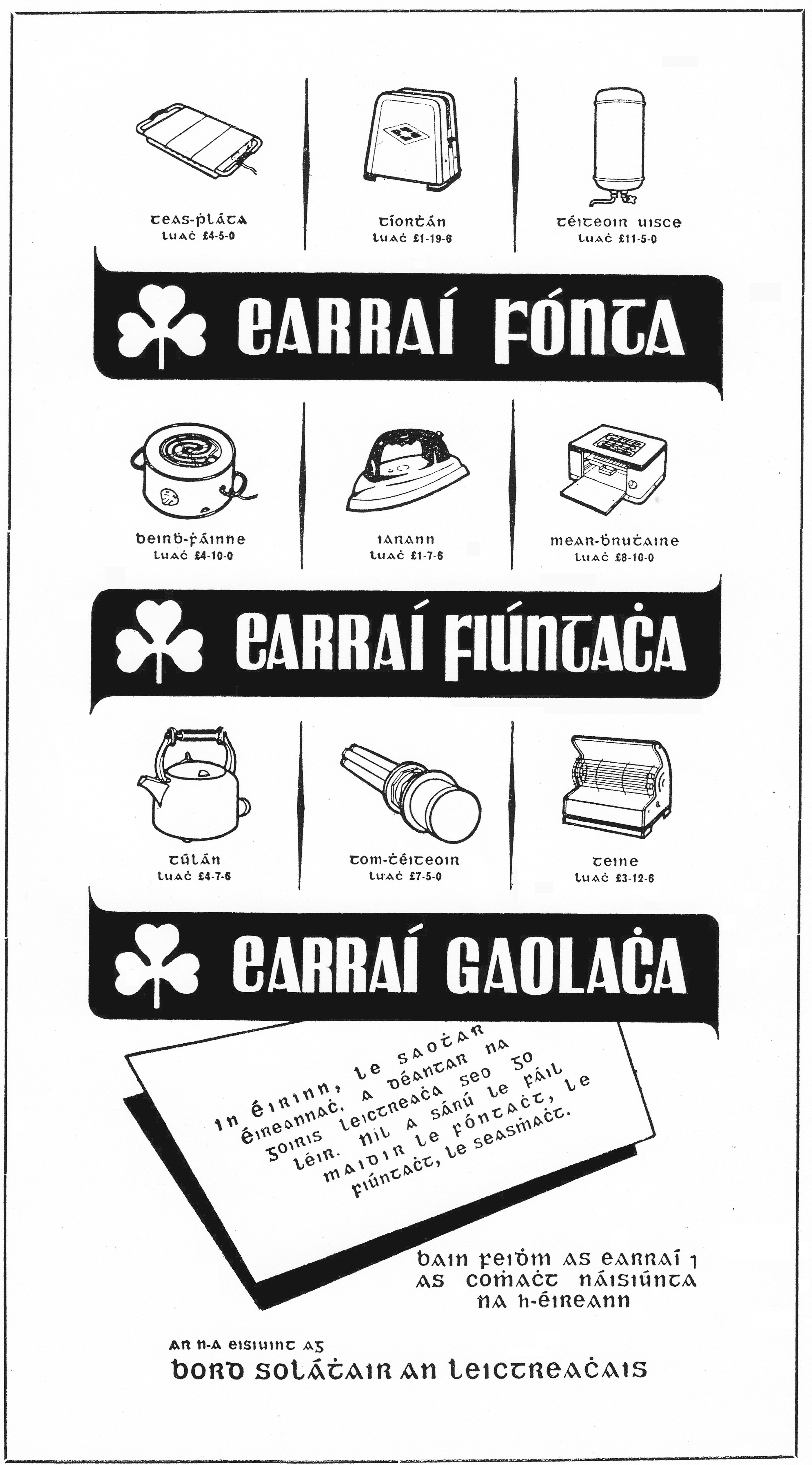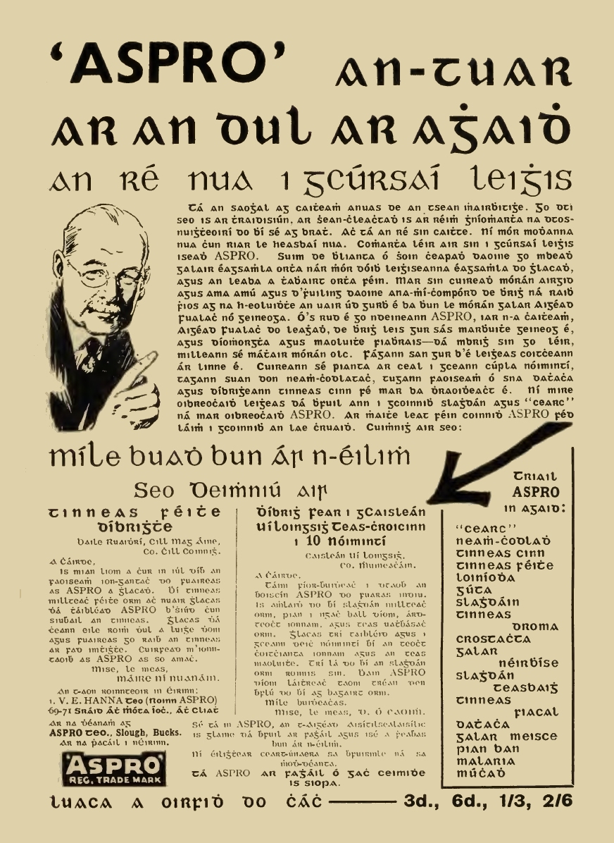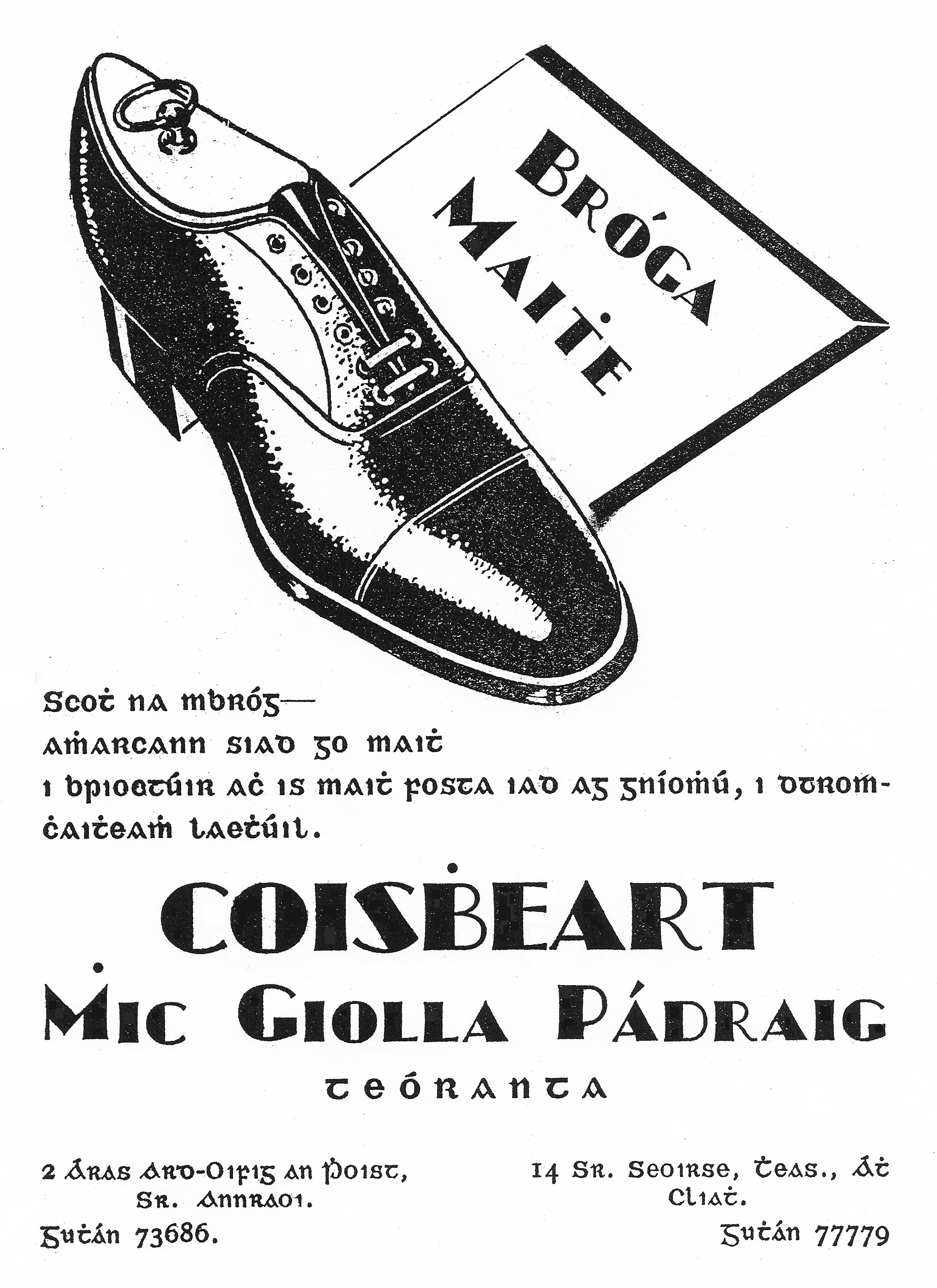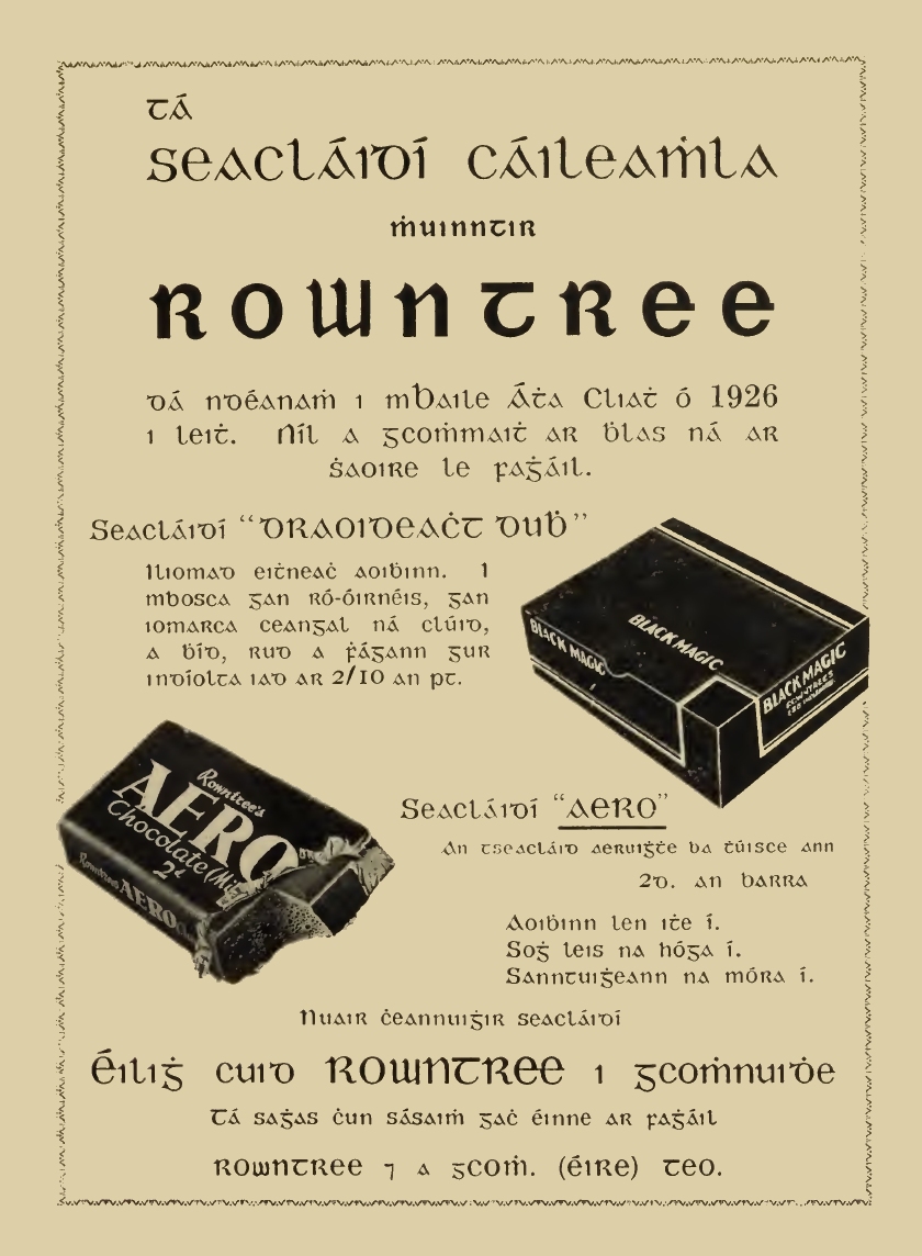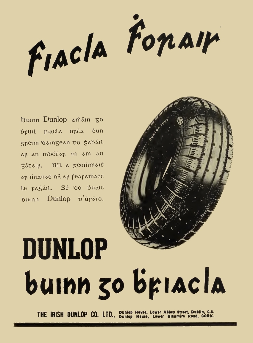 Tá cnuasach d'fhógraí, idir fhógraí tráchtála agus fhógraí rialtais, anseo thíos a léiríonn úsáid an chló Ghaelaigh san fhógraíocht. Beifear ag cur leis an albam seo de réir a chéile.