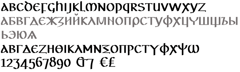 Más mian leat an cló seo a úsáid ar do ríomhaire pearsanta, faigh an comhad ardeorgc.zip ina bhfuil leagan 4.100 d'Ardchló Eorpach GC mar chló OpenType. | |