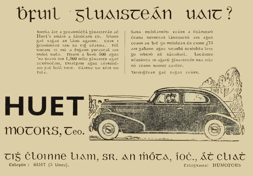 Tá cnuasach d'fhógraí, idir fhógraí tráchtála agus fhógraí rialtais, anseo thíos a léiríonn úsáid an chló Ghaelaigh san fhógraíocht. Beifear ag cur leis an albam seo de réir a chéile.