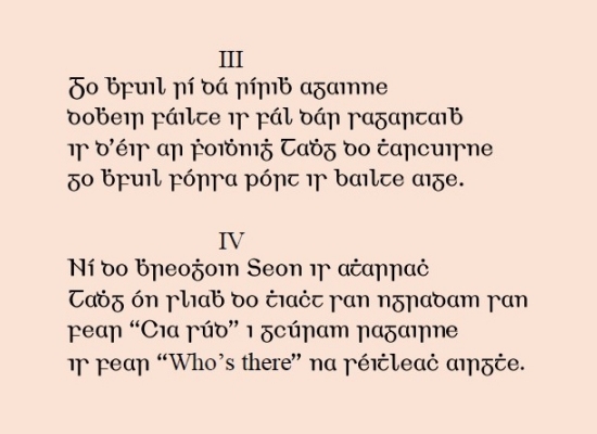 Tá leaganacha nua-aoiseacha de 'r' agus de 's' le fáil mar mhalairtí stíle (stylistic alternates) i leagan 5.00 den chló. Lena n‑úsáid, roghnaigh stylistic set 1.