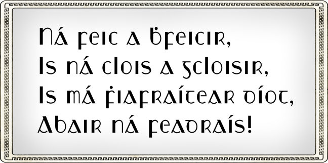 Tá na leaganacha inseacha de 'r' agus de 's' le fáil mar mhalairtí stíle (stylistic alternates) i leagan 3.00 den chló. Lena n‑úsáid, roghnaigh stylistic set 1: