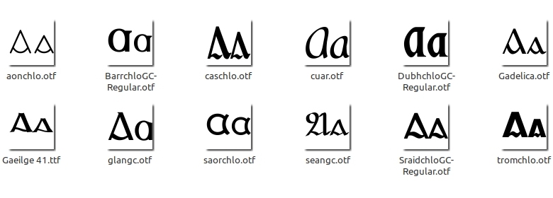 Taispeánfaidh an freagra duit cá bhfuil na clónna TrueType suite ar do ríomhaire. Mar an gcéanna, aimseoidh an t‑ordú seo a leanas na clónna OpenType go léir: